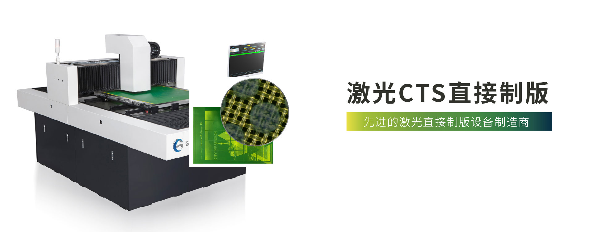CTS  是采用業界領先的紫激光技術,采用美國TI公司的DMD核心元件,配合高功率405nm 激光模塊,以及高精度的直線電機運動系統和穩定的水冷系統。能在絲網表面直接高精度曝光,省卻菲林工序。給客戶帶來高分辨率,高效率及低成本產品。這種最新的數字曝光系統(CTS)將成為業界新的標準。